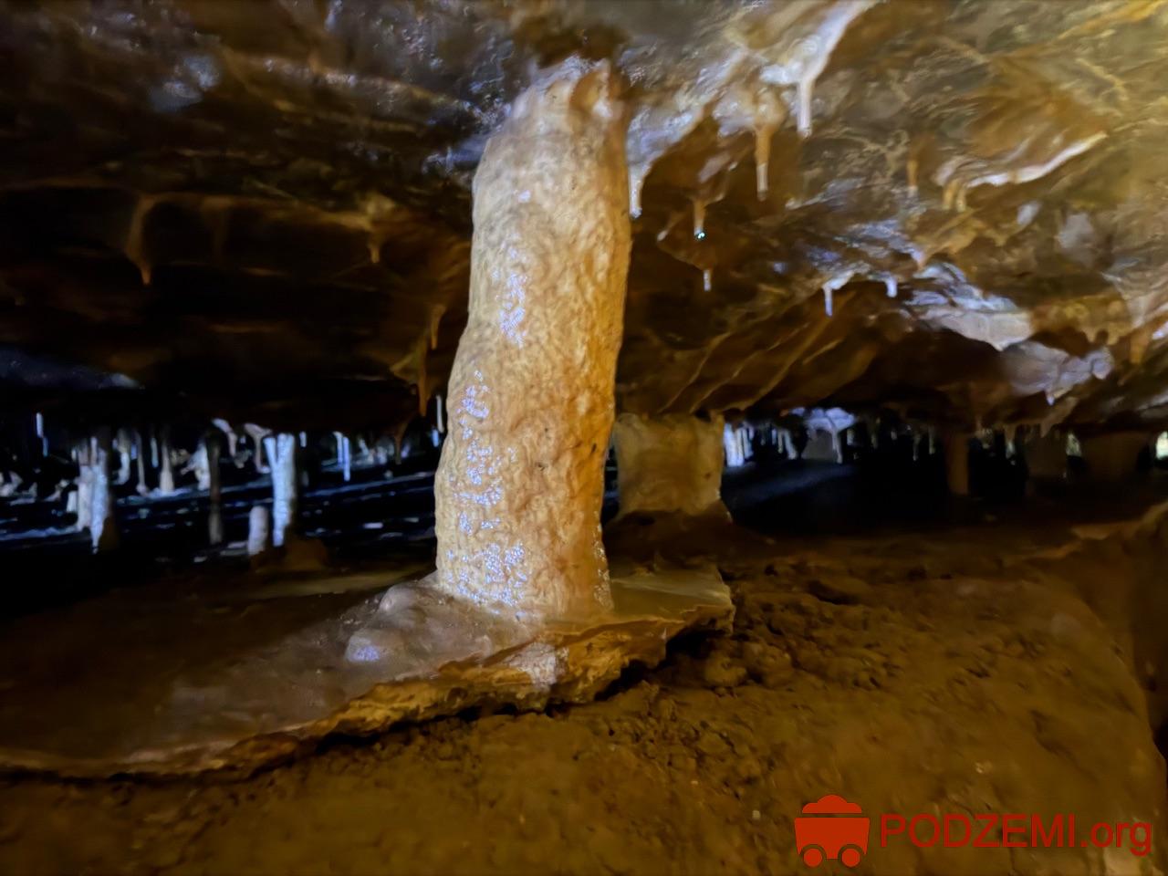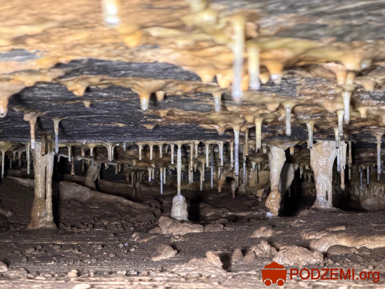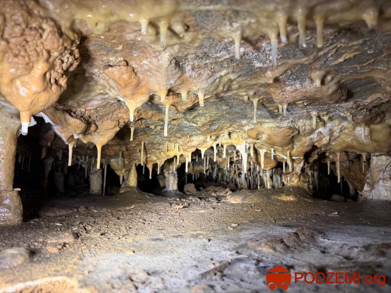 Za vchody (z nichž je již funkční pouze jeden zabezpečený ocelovými vraty) jeskyně sestává z jedné velké dómovité prostory s převažujícími rovnými stropy. Celá jeskyně je, s výjimkou několika menších prostor, zanesena říčními sedimenty až po strop. Klastické sedimenty jsou od hrubozrnných štěrků až po jemné jíly bez přílišné horizontální a faciální proměnlivosti. Tvořily se postupně po zanesení pohřbeného kaňonu před jeskyní, přičemž docházelo k dlouhodobé stagnaci vodní hladiny (příčina rovných stropů s minimálním spádem). Od doby objevu jeskyně do roku 2009 bylo v sedimentech vykopáno přes 600 m chodeb, přičemž práce stále pokračují.